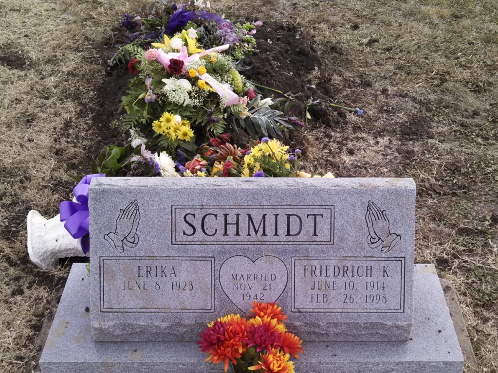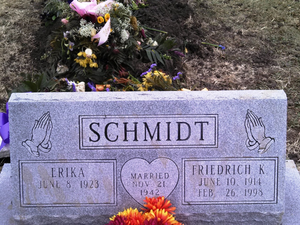When we moved to Paola 24 years ago, we didn't know anyone here, until we immediately met our next door neighbors, Fritz and Erika. How could anyone not feel at home and welcome with them next door?? They were like another set of grandparents for our kids. Seth called Erika YaYa for years, (and we still do sometimes, when we are talking about her). We lost Fritz in 1998, and Erika yesterday. I don't know what I would have done without her in those earlier years. Thanks Joachim Schmidt, Betty Blubaugh, Bob Schmidt, and Mark Schmidt for sharing them with us. Life wouldn't have been the same without them in it!!